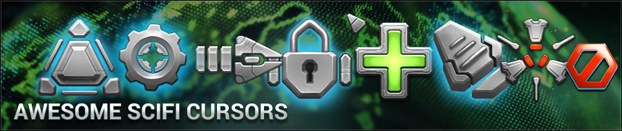 This set contains 8 different science-fiction style cursors. Custom made to make your game more awesome!
